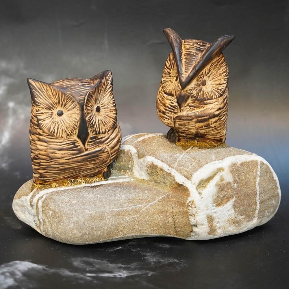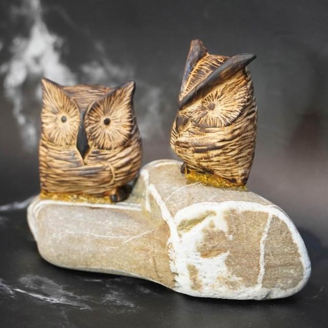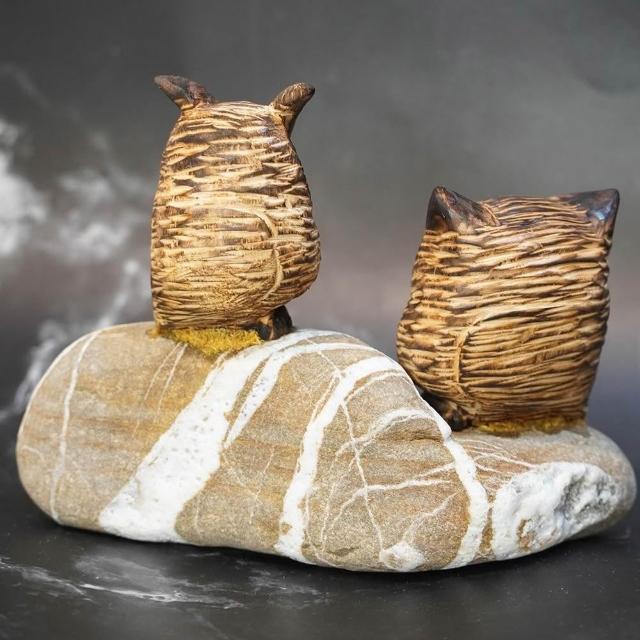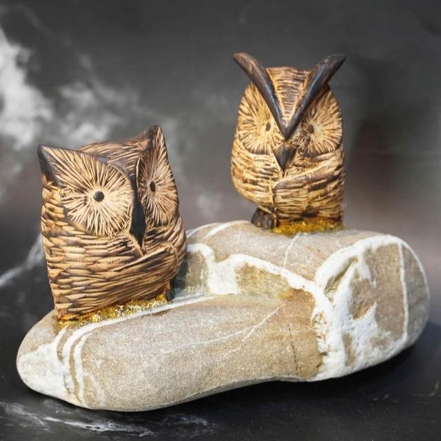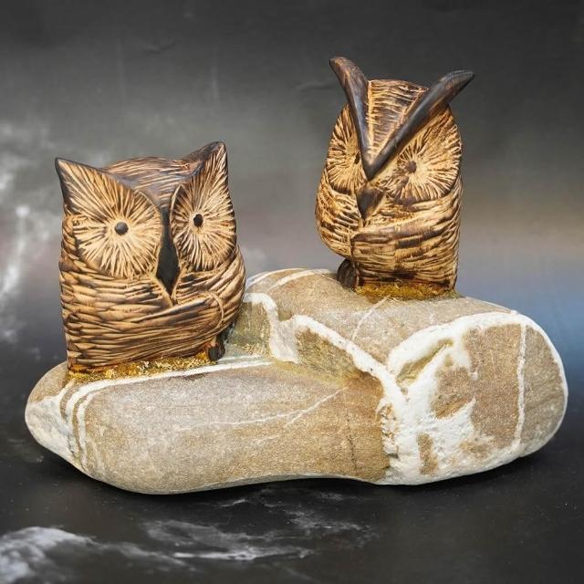 肖楠雙角鴞貓頭鷹木雕搭南田石(藝術品、木雕、貓頭鷹)贈手鍊1條