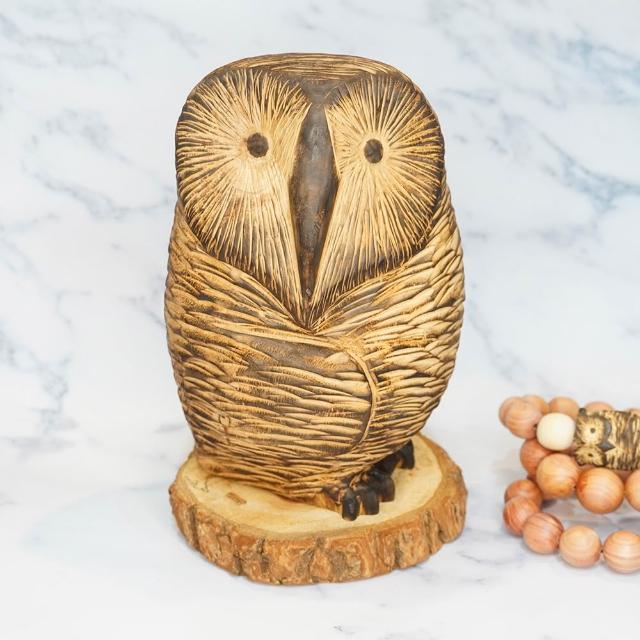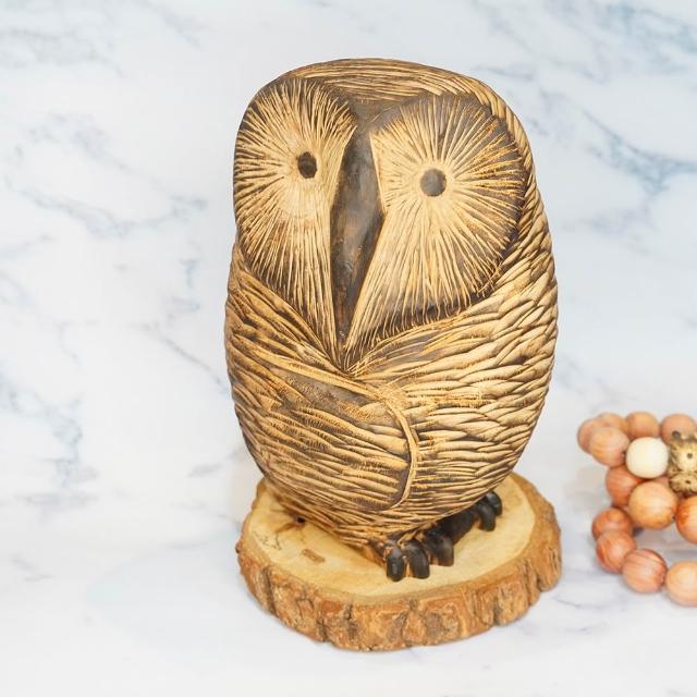 肖楠大草鴞貓頭鷹木雕(藝術品、木雕、貓頭鷹)贈手鍊1條