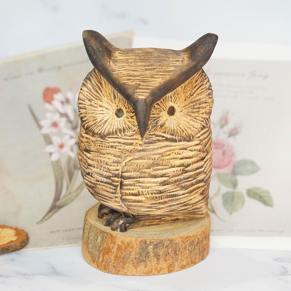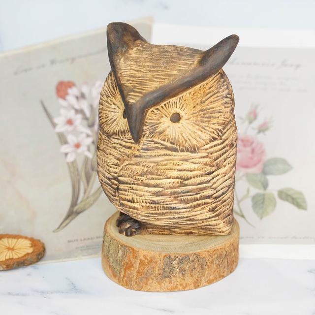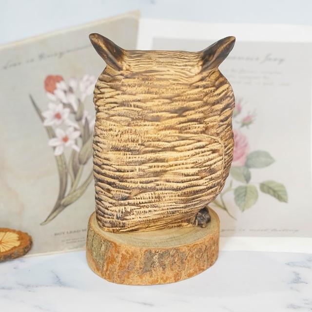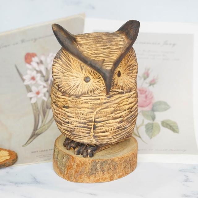 肖楠神氣貓頭鷹木雕(藝術品、木雕、貓頭鷹)贈手鍊1條