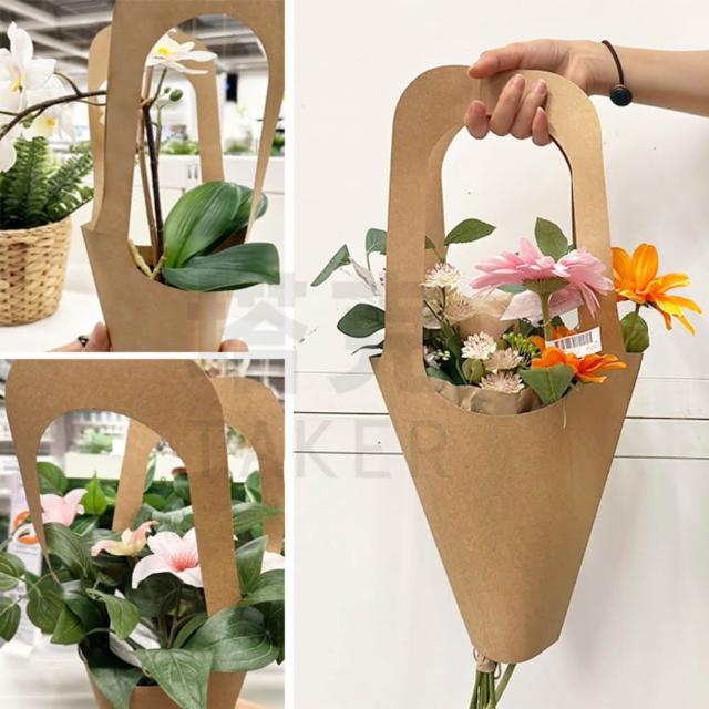 鏤空花袋 大號54x30cm 牛皮花束袋 紙花袋 手提紙袋 盆栽 鮮花袋 包裝袋 盆栽袋 花藝袋