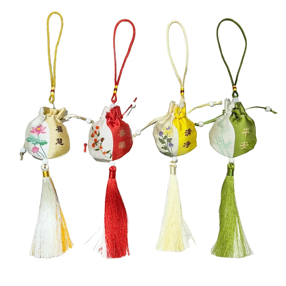 端午節 香囊 香包袋 流蘇束口袋 雙色8x9cm 古風香包 錦緞香包 刺繡錦囊 艾草 護身符 祈福 香袋 收納袋