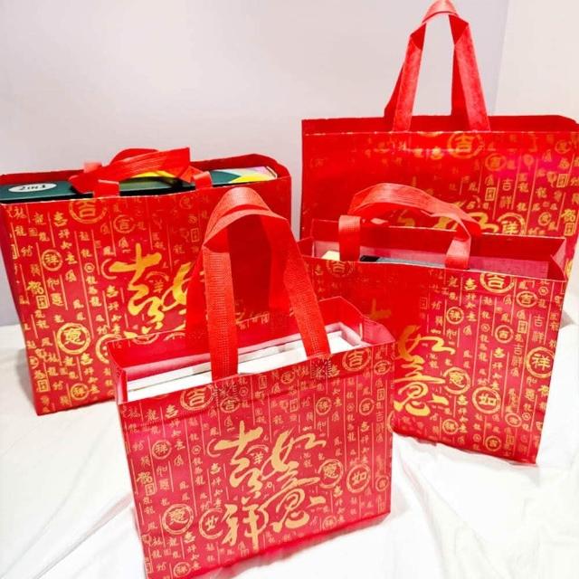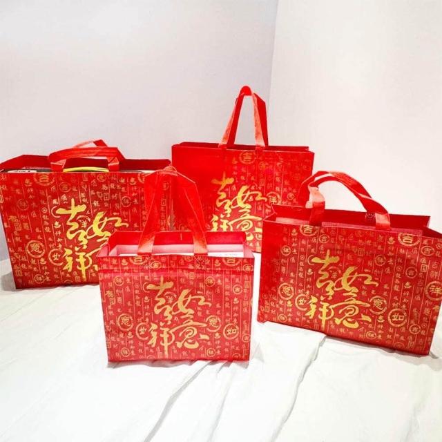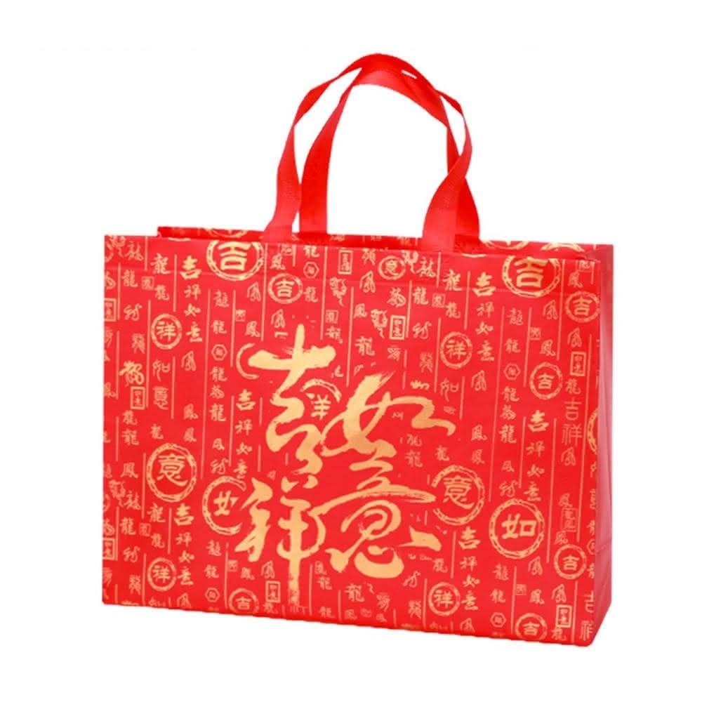 吉祥如意 橫式袋 不織布手提袋 覆膜福袋 禮品袋 防水 購物袋 酒袋 包裝袋 環保袋 禮贈品 禮盒袋