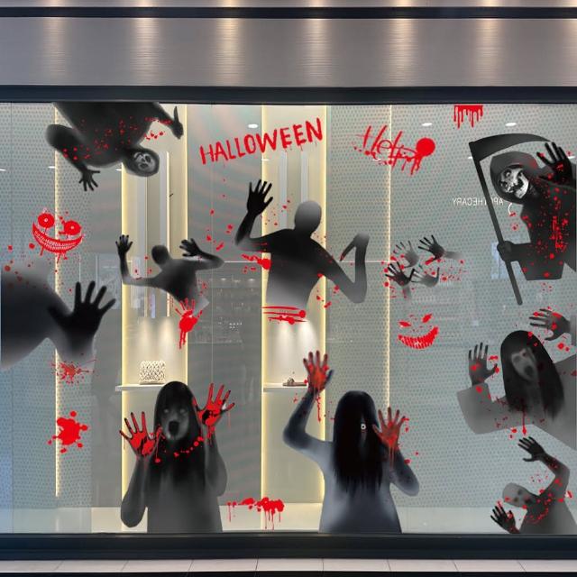 萬聖節 恐怖鬼影 窗貼 6張入 靜電貼 玻璃貼 壁貼 卡通貼紙 裝飾貼 牆貼 地板貼 彩繪裝飾 鬼屋 布置