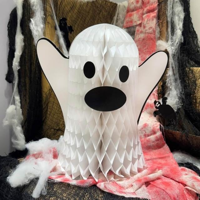 萬聖節 蜂窩球 白色幽靈 萬聖節布置 擺件 吊飾 紙拉花 紙模型 紙彩球 裝飾 鬼屋 派對