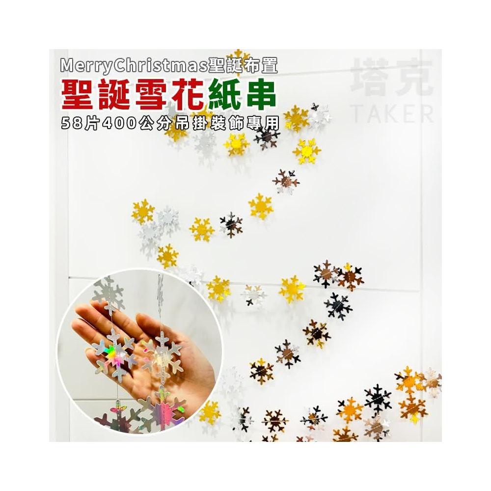 聖誕節 紙串 雪花紙片 紙掛件 58片2色 吊飾 紙花串 門簾串 掛飾 派對 居家 布置 裝飾