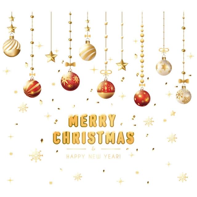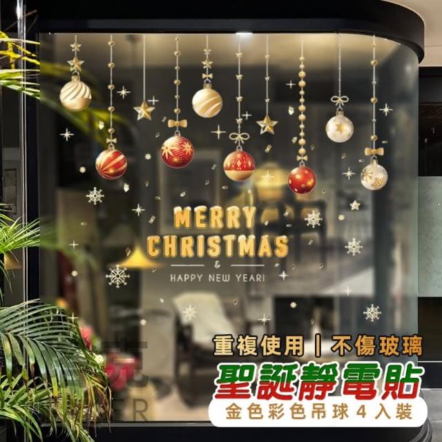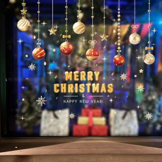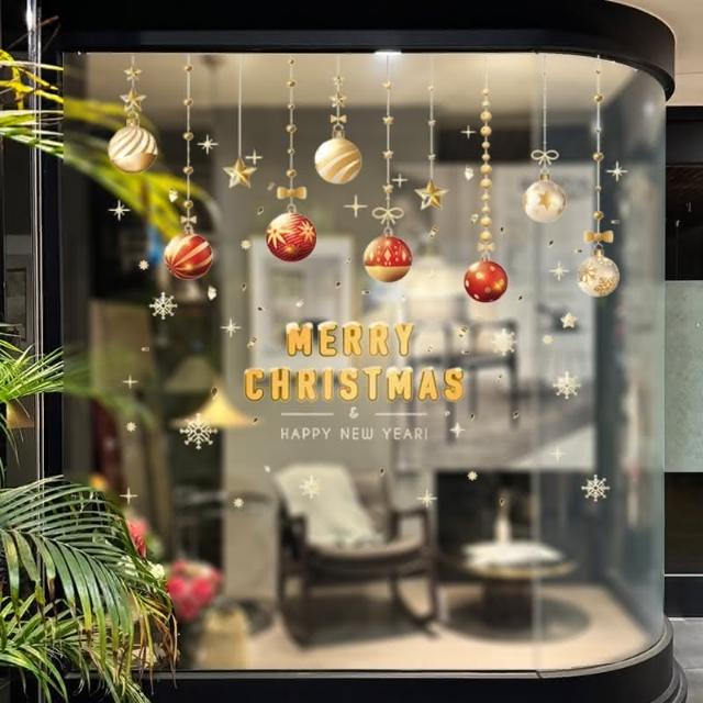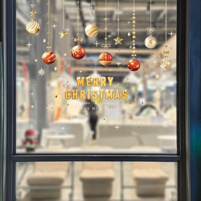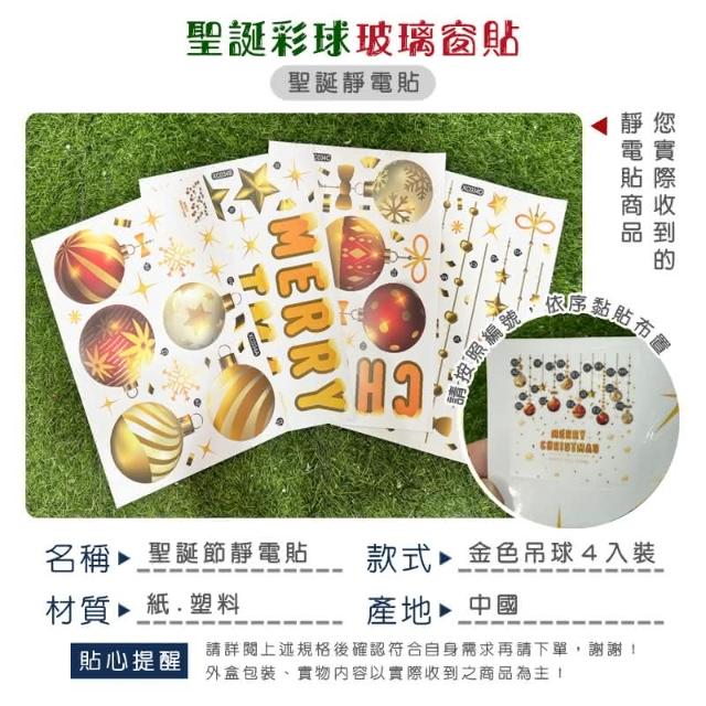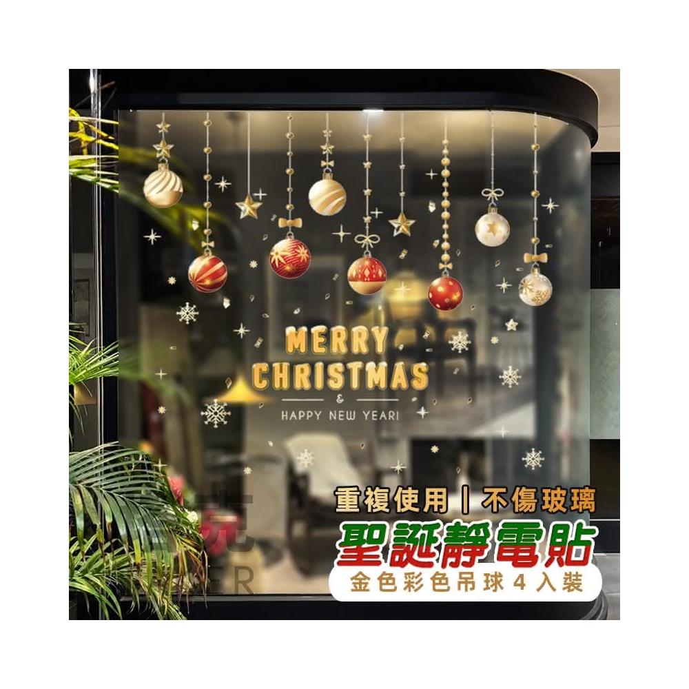 聖誕窗貼 金色吊球 靜電玻璃窗貼 窗貼 聖誕節 玻璃窗貼 靜電貼 玻璃貼 貼紙 無痕貼 聖誕節布置