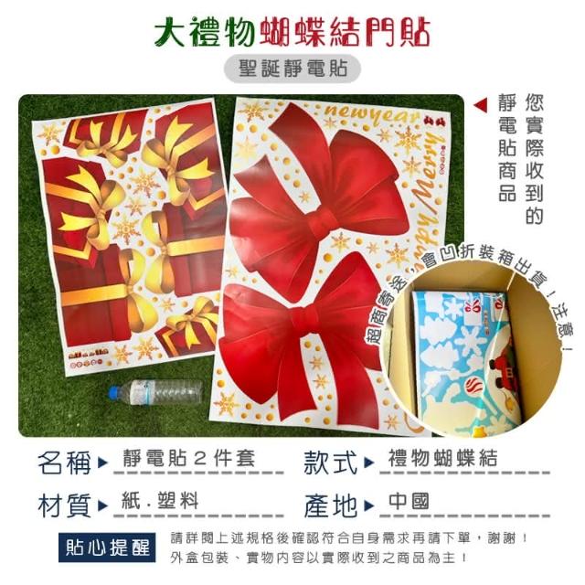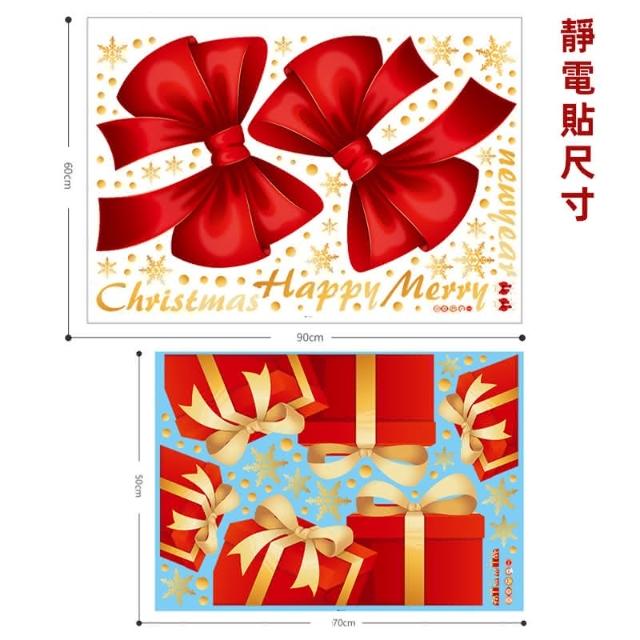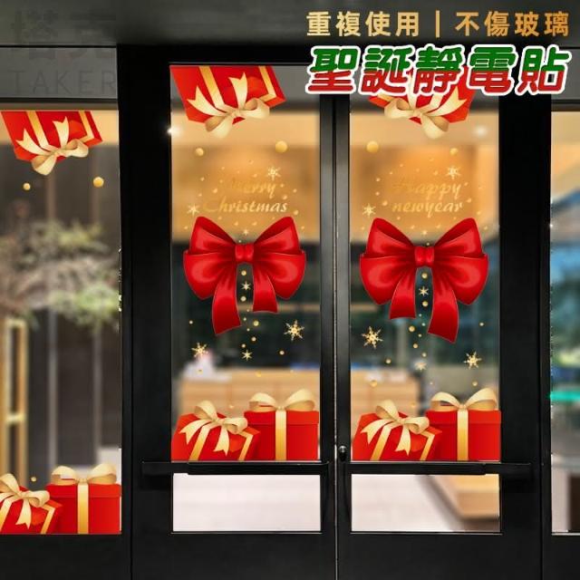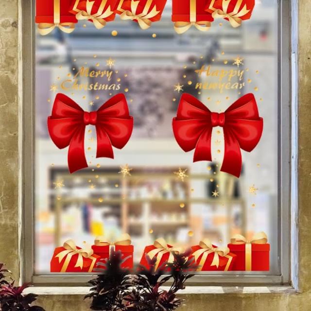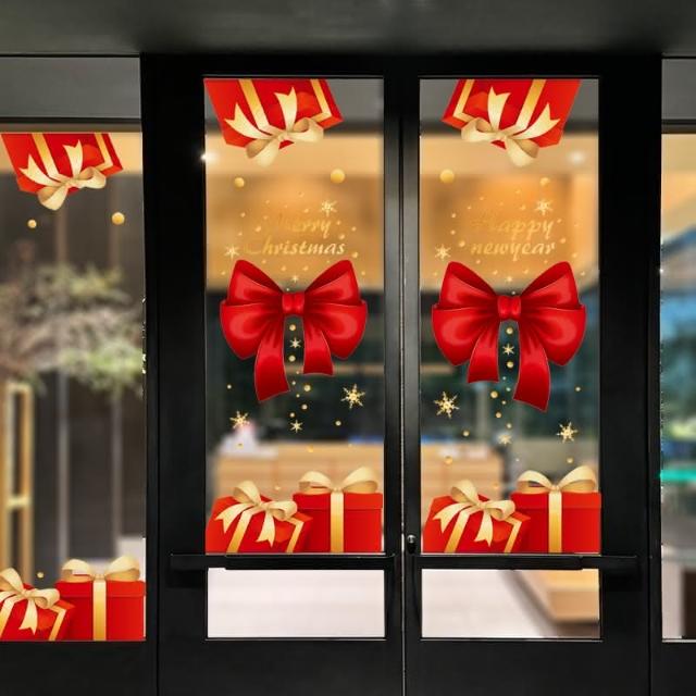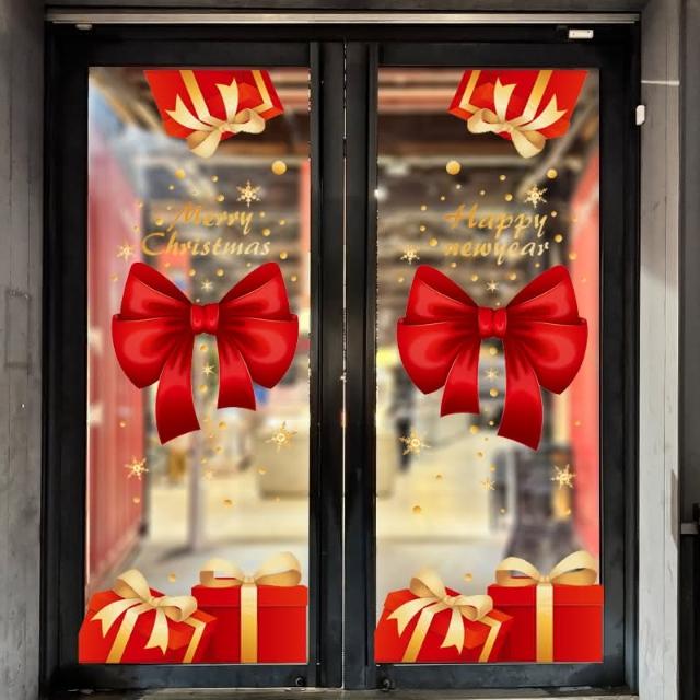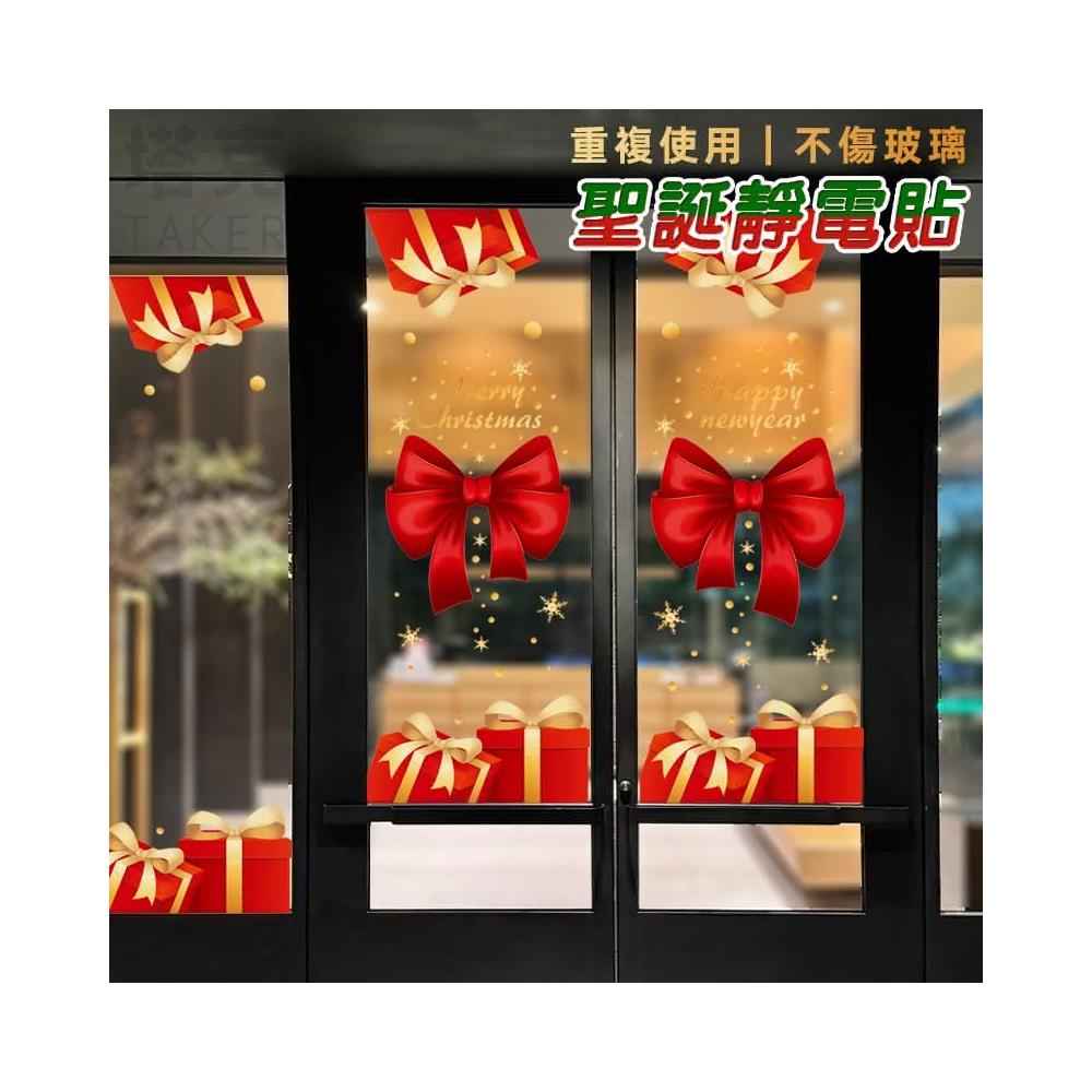 聖誕節 對門貼 靜電貼 蝴蝶結禮物 櫥窗貼 門貼 門口裝飾 彩色貼紙 無痕貼 玻璃貼 牆貼 壁貼 布置
