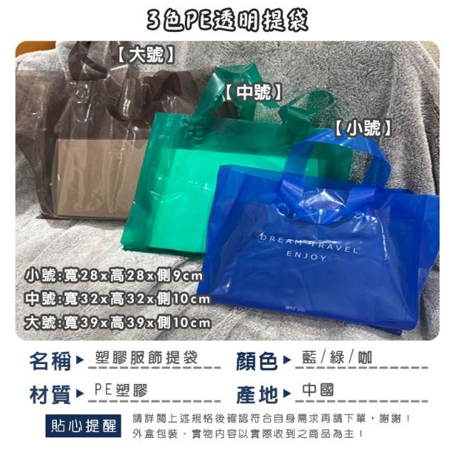 透明袋 服飾袋 塑膠提袋 防水手提袋 3色 購物袋 環保袋 服飾包裝袋 外出袋 禮品袋 韓國手提袋