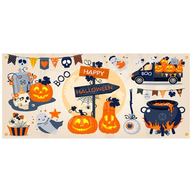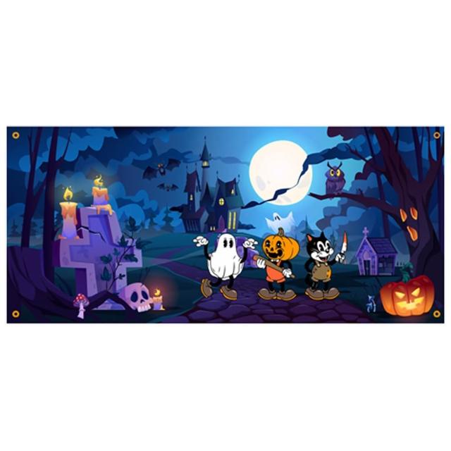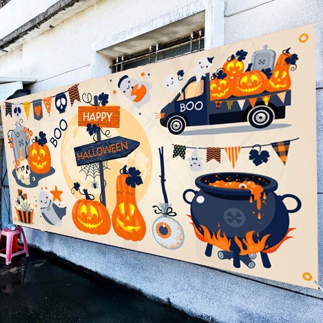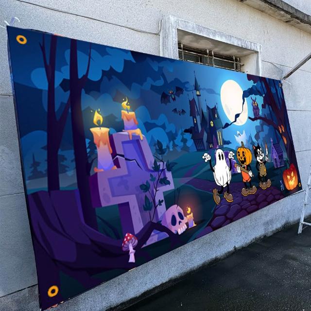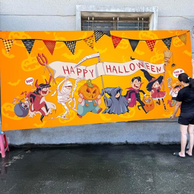 萬聖節 超大掛布 車庫旗 背景牆 400cm 橫幅 戶外布條 紅布條 門口布條 派對布置 背景布幕