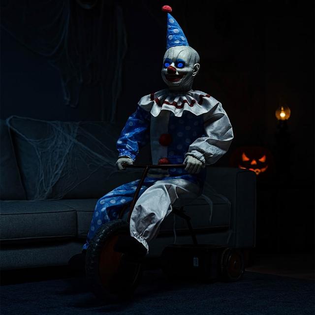萬聖節 騎車小丑 大型擺件 可動玩偶 鬼屋裝飾 派對布置 遊樂園 恐怖 整人玩具 奪魂鋸
