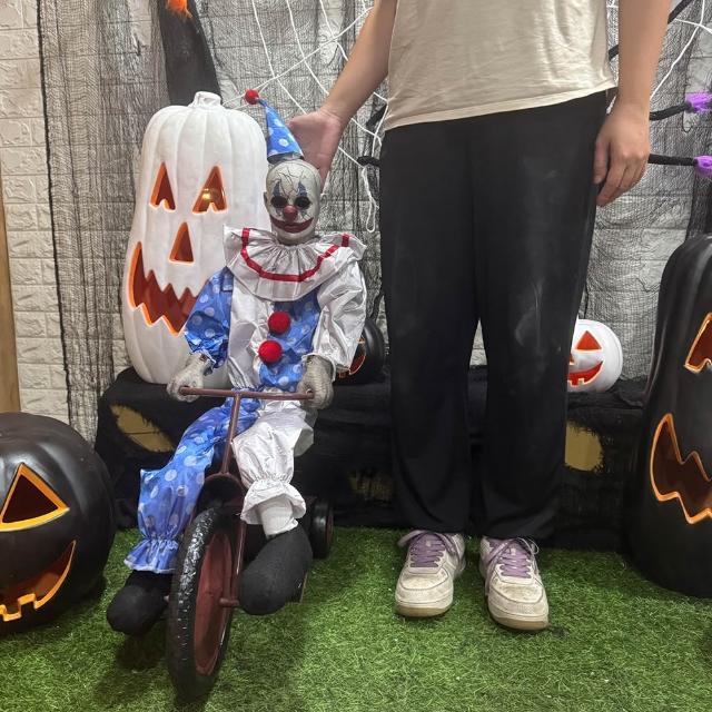 萬聖節 騎車小丑 大型擺件 可動玩偶 鬼屋裝飾 派對布置 遊樂園 恐怖 整人玩具 奪魂鋸