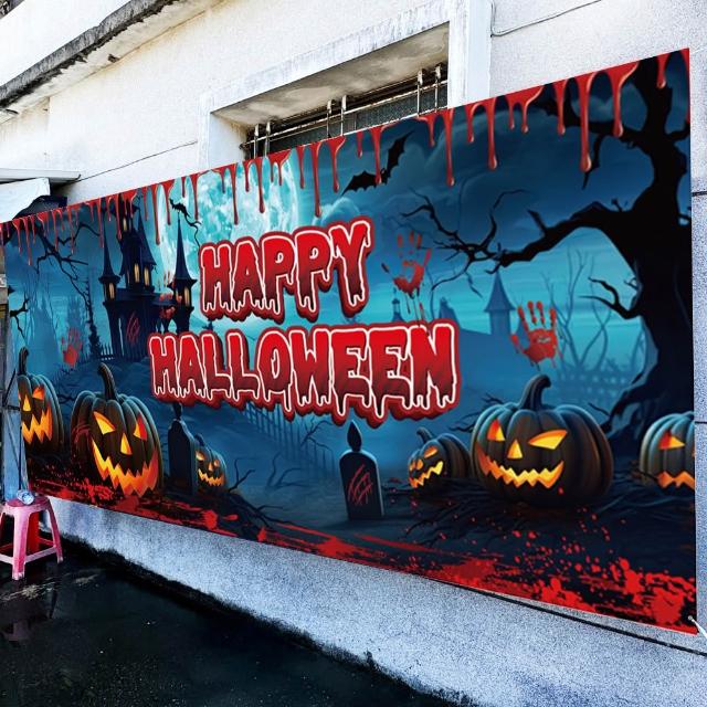 萬聖節 超大車庫旗 巨型橫幅 488cm 背景牆 戶外布條 門口布條 派對布置 背景布幕 庭院裝飾