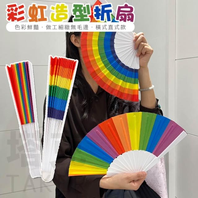 彩虹扇 紙扇 折扇 彩色扇 舞蹈扇 工藝扇 表演扇 宮廷扇 跳舞扇 手工扇 遊行 擺飾 派對道具
