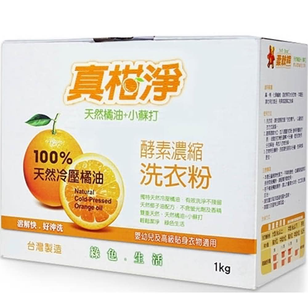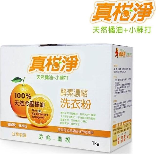 真柑淨冷壓橘油+小蘇打 強效酵素濃縮洗衣粉-1公斤盒裝x6