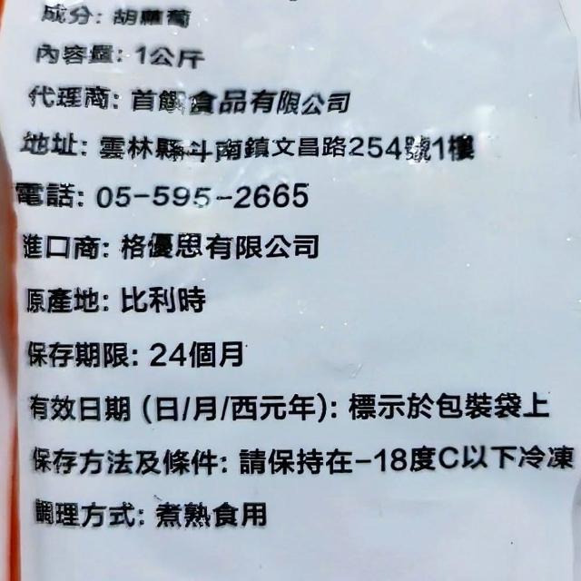 蘭陽餐飲食材行首饌 冷凍 紅蘿蔔球 ( 1kg ) 比利時原裝進口 胡蘿蔔 球狀紅蘿蔔 蔬菜 蔬果 法式胡蘿蔔