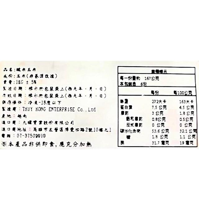 蘭陽餐飲食材行九曜 冷凍 糯米玉米 ( 有整支跟已切塊2種可選 / 1kg裝 ) 非基改玉米 截切蔬菜 冷凍食品