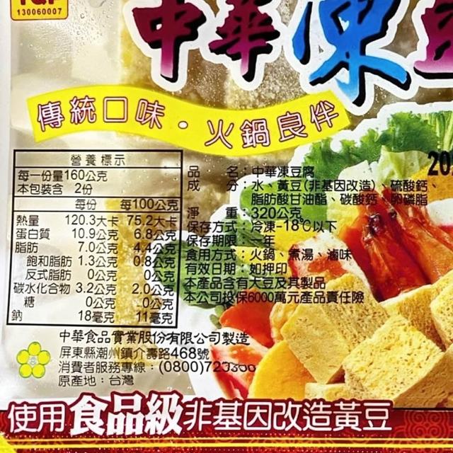 蘭陽餐飲食材行中華 凍豆腐 ( 320g/盒 ) 非基改 火鍋料 冷凍豆腐 冷凍食品 → 無防腐劑 台灣製造