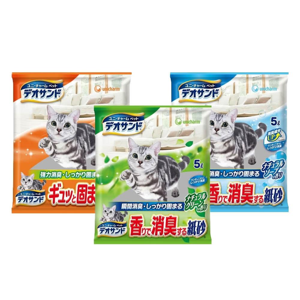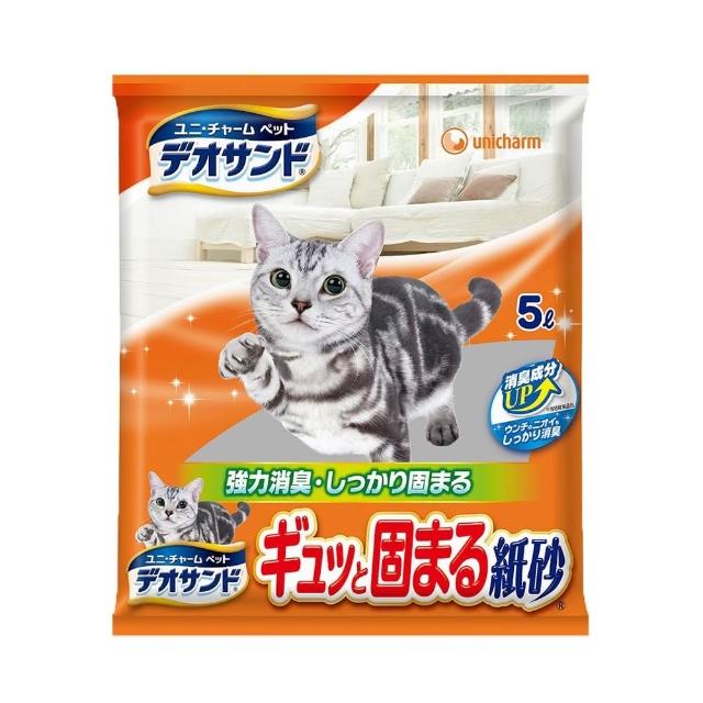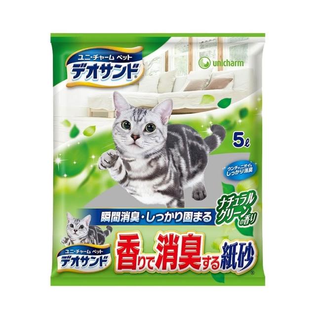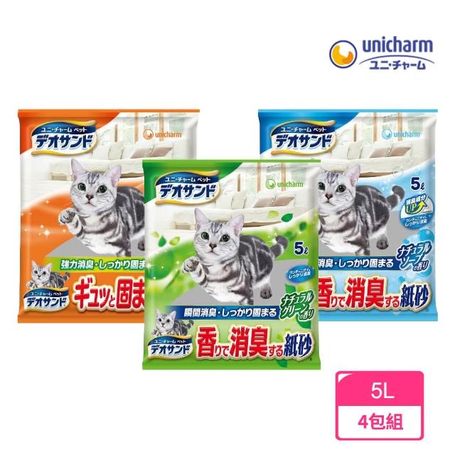 Unicharm Pet 消臭大師瞬間結團紙砂 5L*4包組 強力結團/沐浴香/森林香確實結團/ 清理好簡單/貓砂/宅寵醬寵物用品