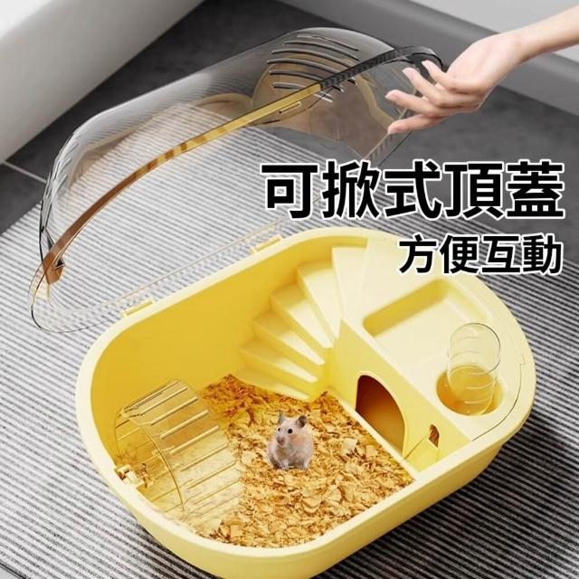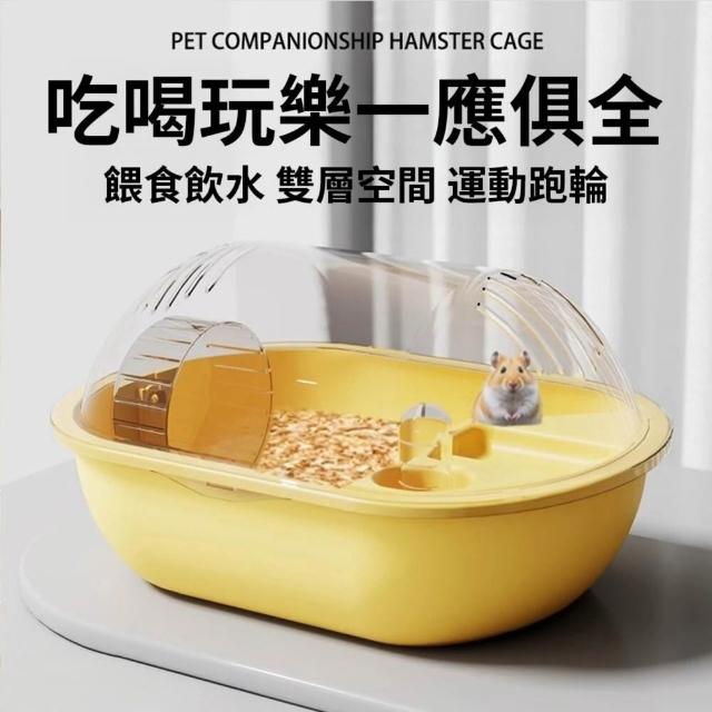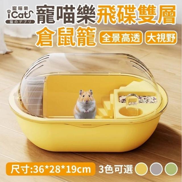 iCat 寵喵樂飛碟雙層倉鼠籠雙層平台 透明大掀蓋 運動跑輪 餵食餵水 遊戲 全功能 倉鼠屋/宅寵醬寵物用品