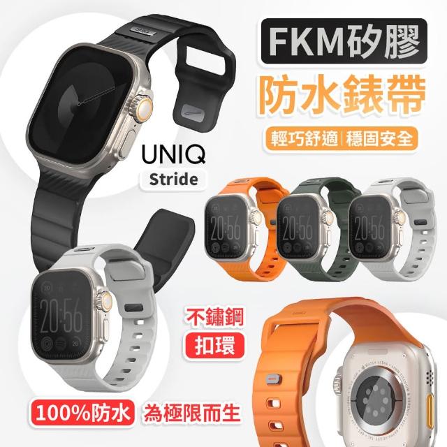 魔比歐 UNIQ Stride Apple Watch 防水FKM橡膠 不鏽鋼錶帶(38/40/41/42mm 44/45/46/49mm S10 S9 S8 可用)