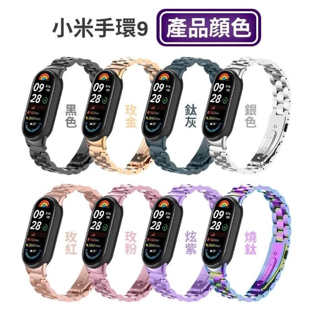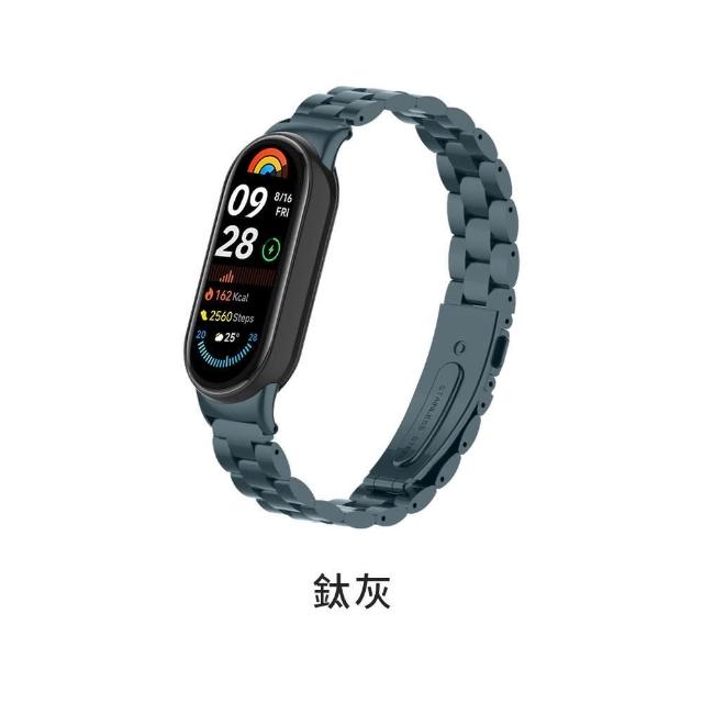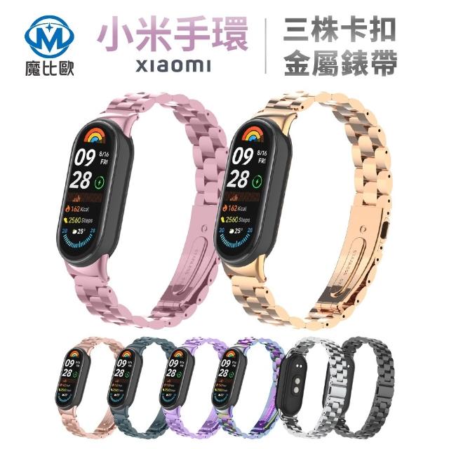 魔比歐 小米手環 三珠不鏽鋼金屬錶帶 ( 小米 8 / 小米 9 / 小米 10 共用 無錶框 )