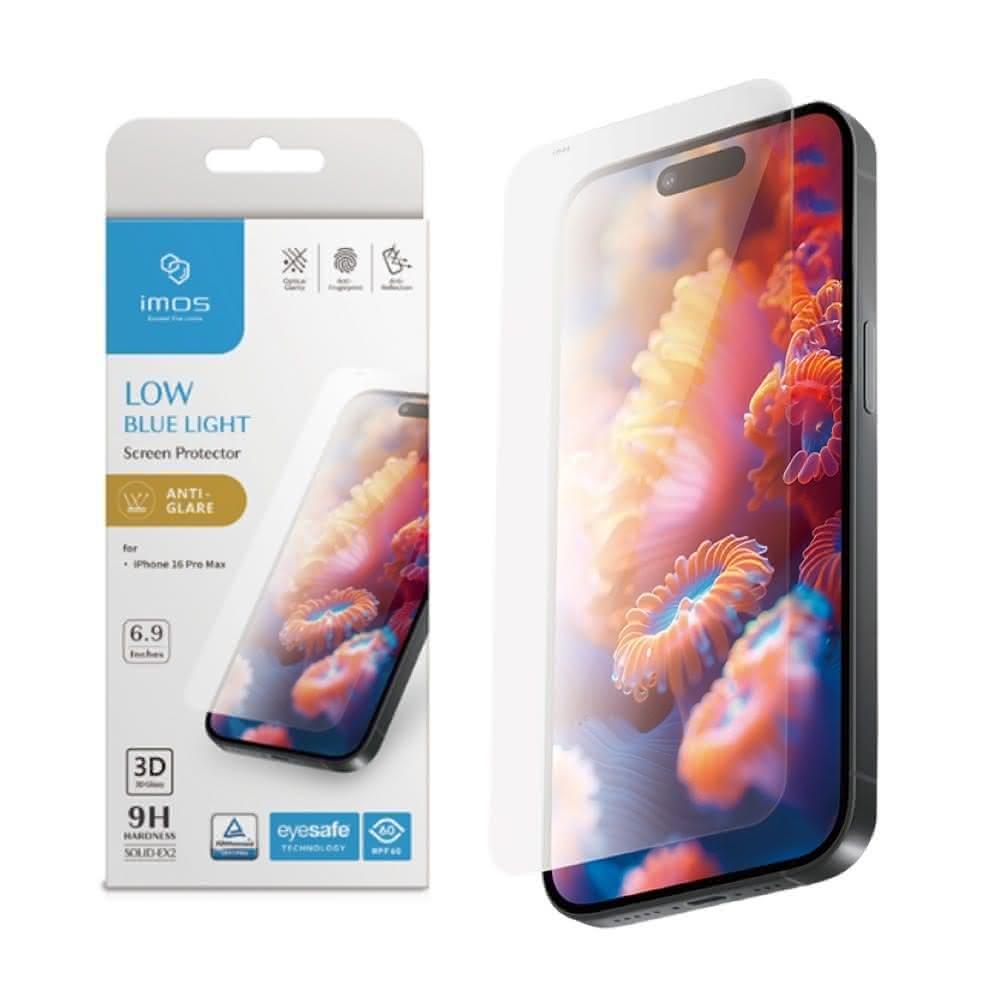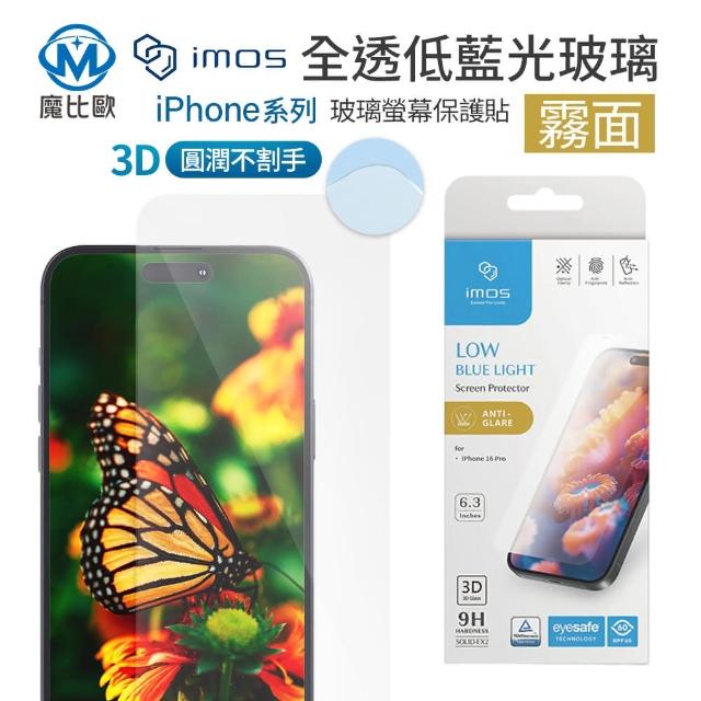 魔比歐 imos 3D RPF60 低藍光 霧面全透明 玻璃螢幕保護貼 iPhone 16 系列 ( 適用 i16 Pro / 16 Pro Max 抗藍光 螢幕保護貼 玻璃貼 )