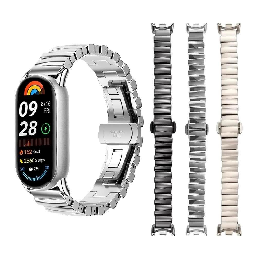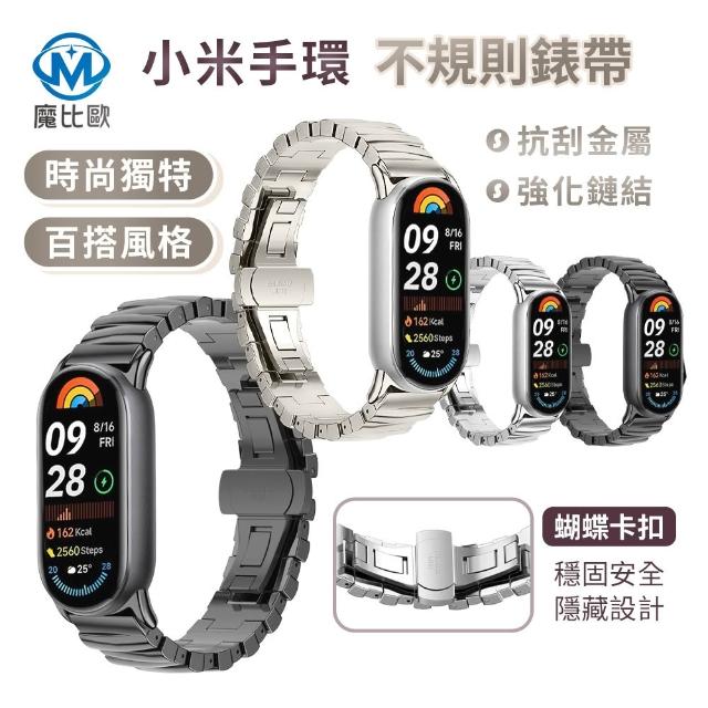 魔比歐 小米手環 不鏽鋼 不規則錶帶 ( 適用 小米8 小米9 小米10 替換錶帶 手錶帶 通用錶帶 蝴蝶卡扣 )