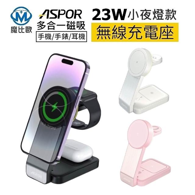 魔比歐 ASPOR 23W 多合一 磁吸折疊無線充電器 W22 ( 適用 Airpods Apple Watch iPhone 三星 手機 手錶 耳機 )