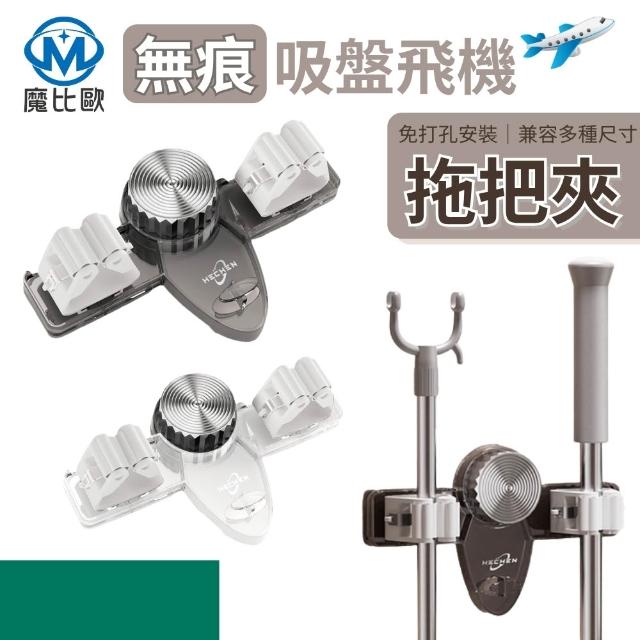 魔比歐 無痕吸盤飛機拖把夾 ( 免打孔 真空吸盤 拖把架 掃把架 壁掛式 浴室 廁所 廚房 清潔收納 )