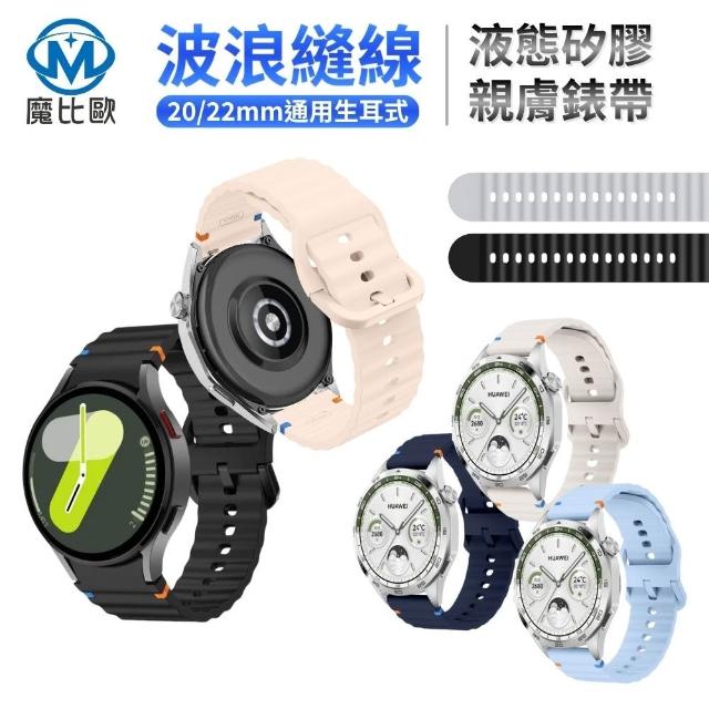 魔比歐 通用款 波浪縫線矽膠錶帶 20mm / 22mm ( 手錶帶 替換錶帶 快拆式 三星 小米 紅米 華為 可用 )