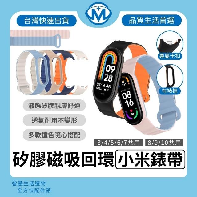 魔比歐 小米手環 3 / 4 / 5 / 6 / 7 / 8 / 9 / 10 磁吸 雙色矽膠回環錶帶 小米手錶帶