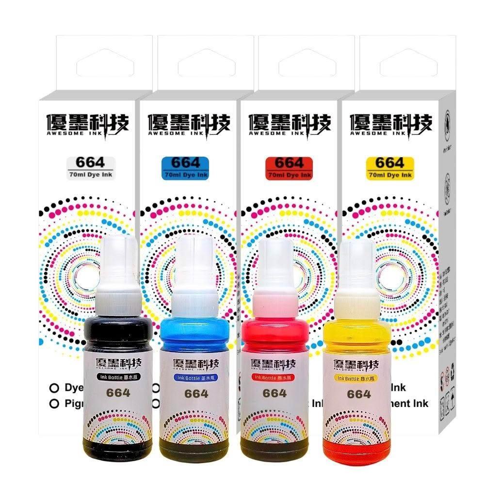 優墨科技(黑100ml&70ml/彩70ml)epson 664 相容墨水 L121/L350/L360/ L565 印表機墨水