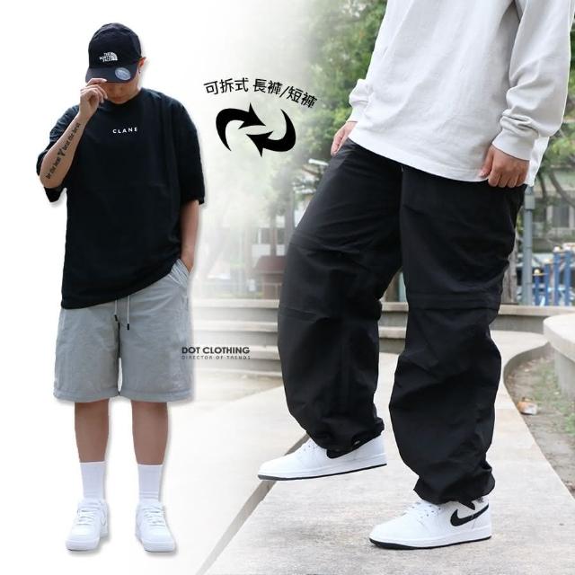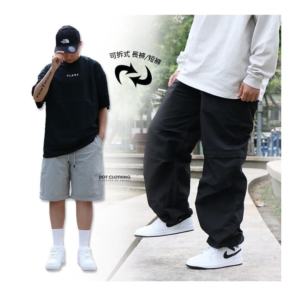 日系 可拆式 機能 寬褲 防風 防潑水 抽繩 工作褲 長褲 可拆成 短褲 一褲兩穿 黑 灰 DOT聚點