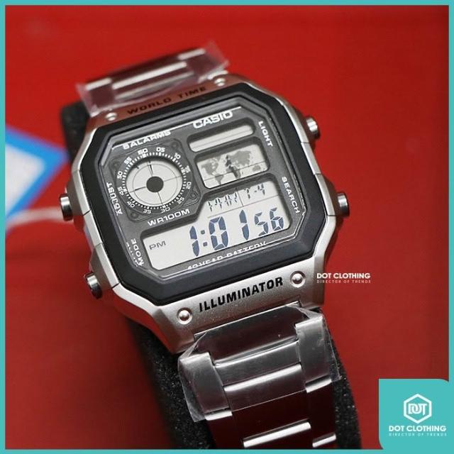 CASIO 卡西歐CASIO 卡西歐 世界地圖錶 世界時間 銀色 鋼錶 手錶 AE-1200WHD-1AVDF DOT聚點