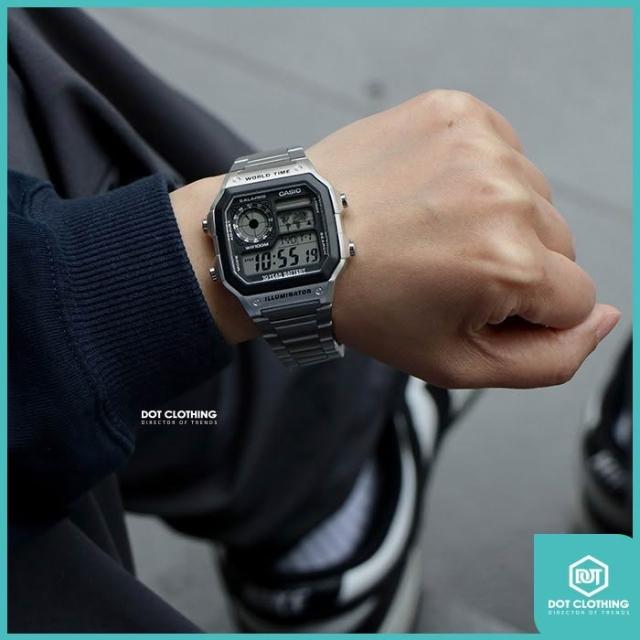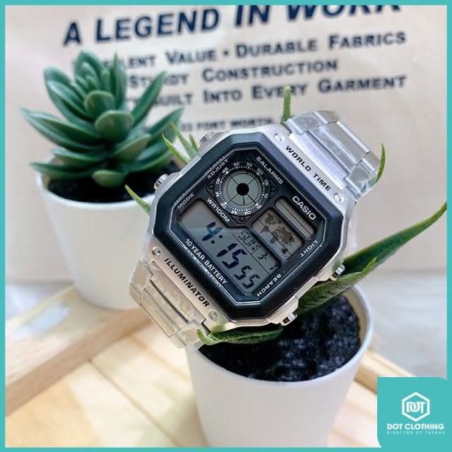 CASIO 卡西歐CASIO 卡西歐 世界地圖錶 世界時間 銀色 鋼錶 手錶 AE-1200WHD-1AVDF DOT聚點