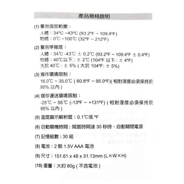 豪展 AViTA非接觸式紅外線體溫計/額溫槍(NT61)
