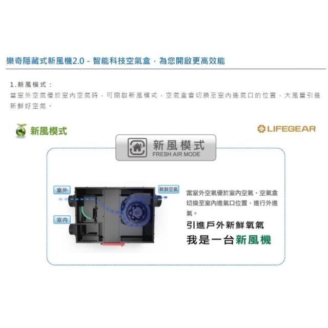 Lifegear 樂奇樂奇 隱藏式 新風機 空氣淨化 清淨 搖控 三道濾網 新風機 HEPA HVO-350G2 HVO-350C2