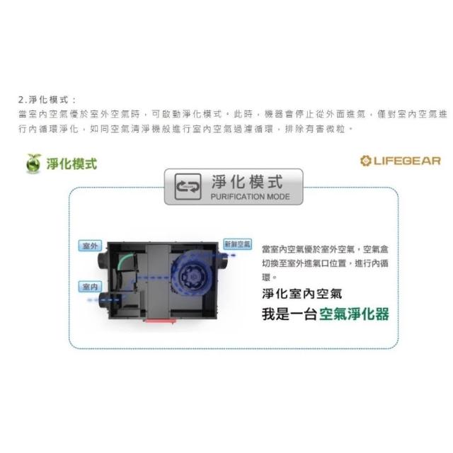 Lifegear 樂奇樂奇 隱藏式 新風機 空氣淨化 清淨 搖控 三道濾網 新風機 HEPA HVO-350G2 HVO-350C2