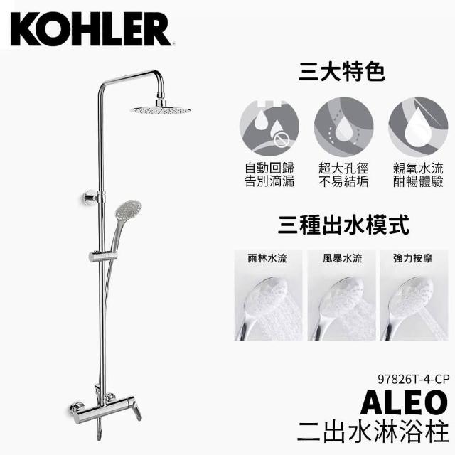 KOHLERALEO 二出水淋浴柱 林浴龍頭 頂頭花灑 蓮蓬頭 97826T-4-CP