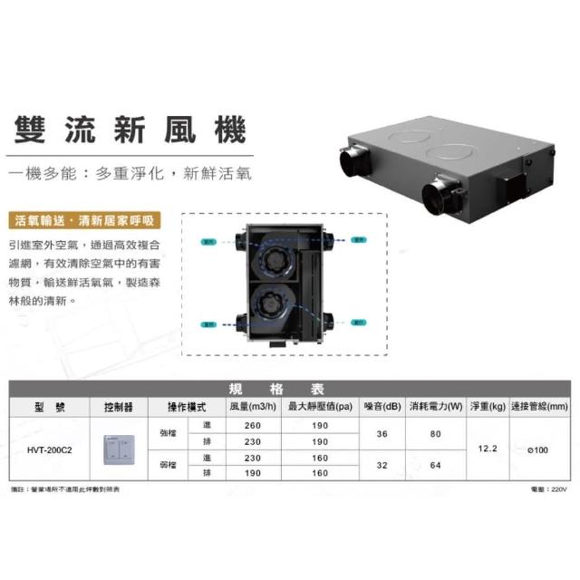 Lifegear 樂奇Lifegear 樂奇 隱藏式 雙流 新風機 換氣機 全熱交換機 HVT-200C2