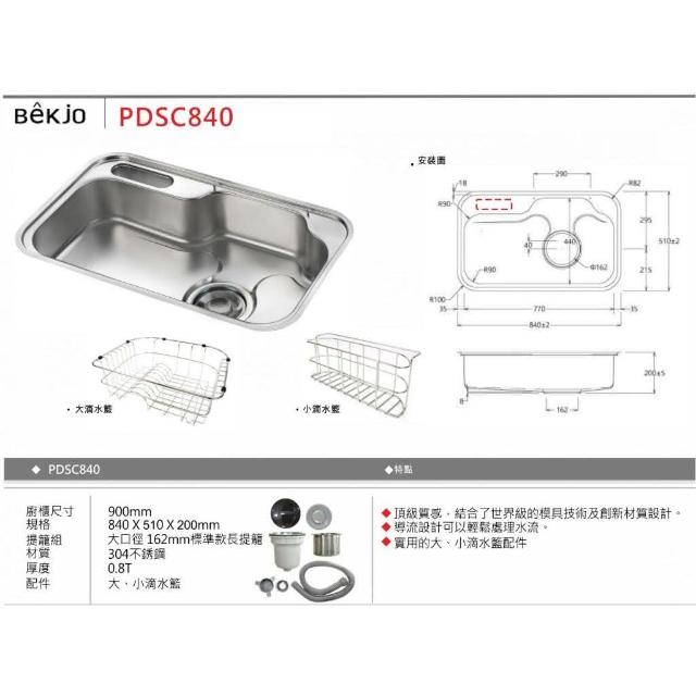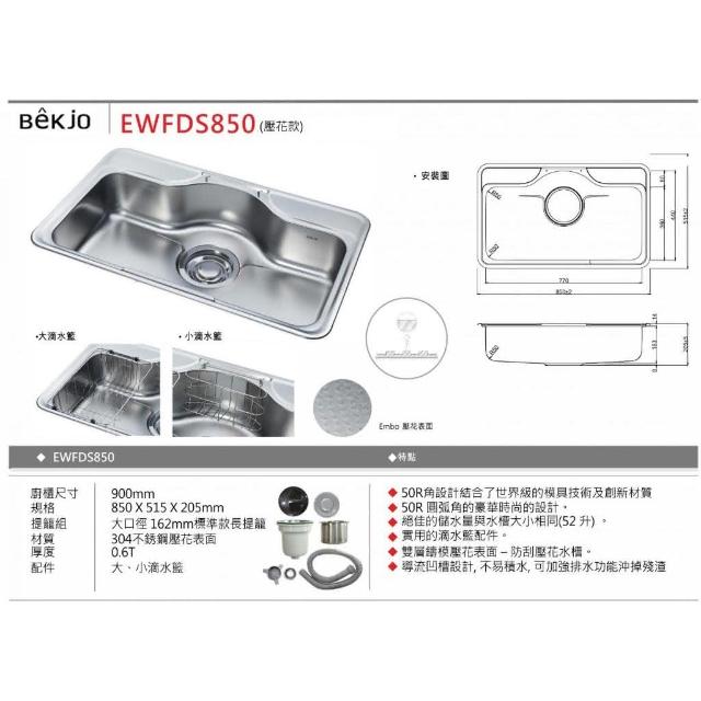 Bekjo 韓國品牌 不鏽鋼 廚房水槽 水槽 洗碗槽 大單槽 EWFDS850 PDSC840