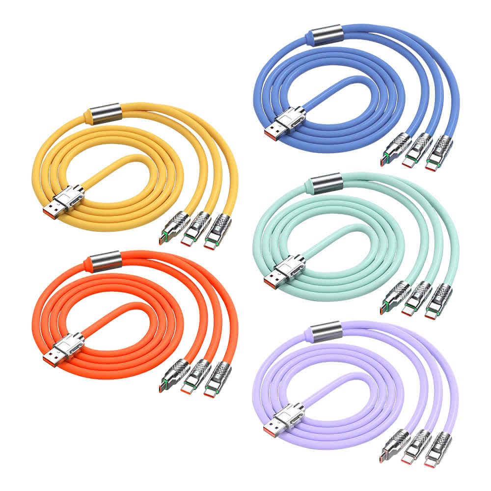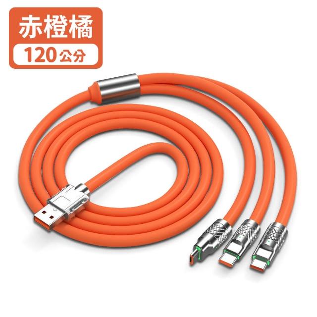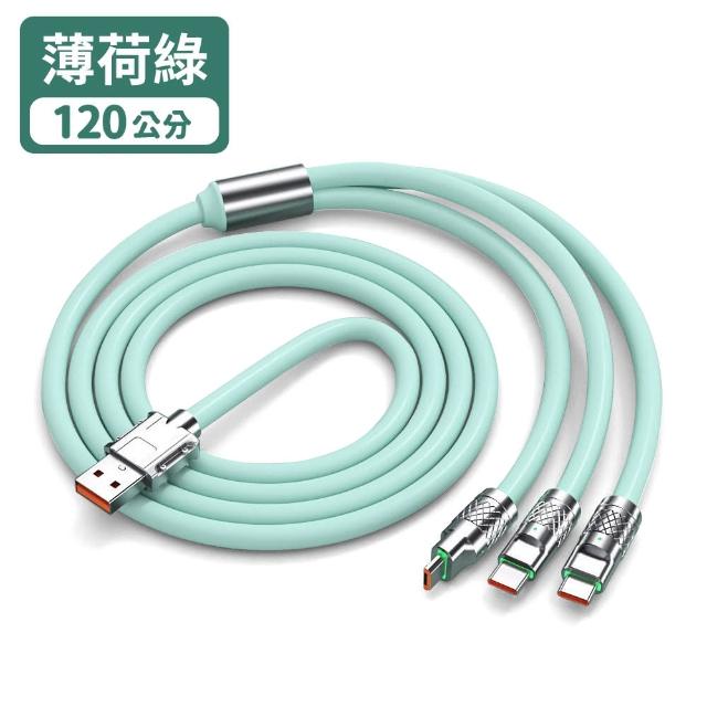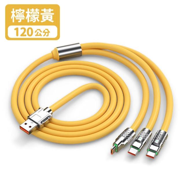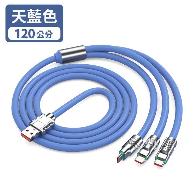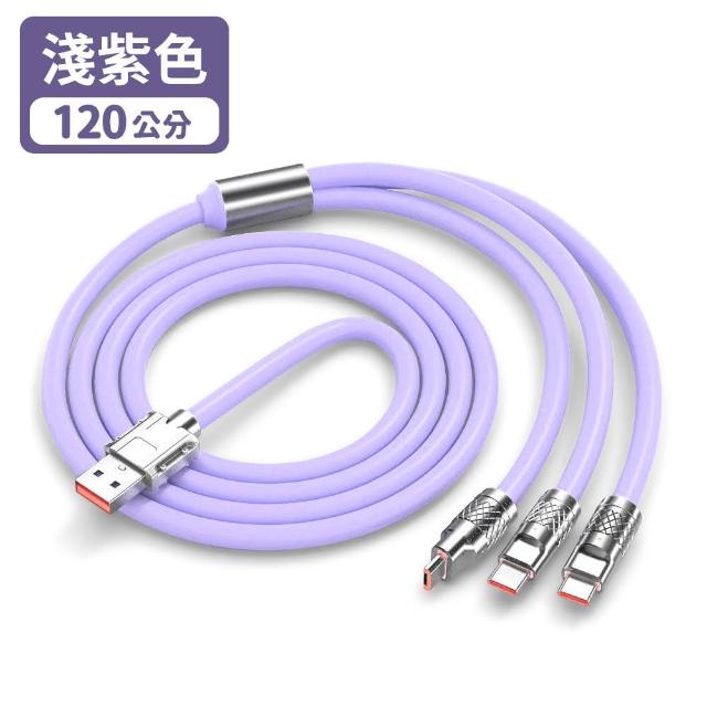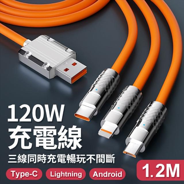 理享家 120W/6A 三合一快速充電線 - 120cm(iPhone 蘋果 安卓 Lightning MicroUSB Type-C 快充線 充電線 電源線)