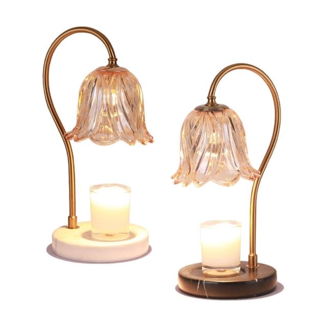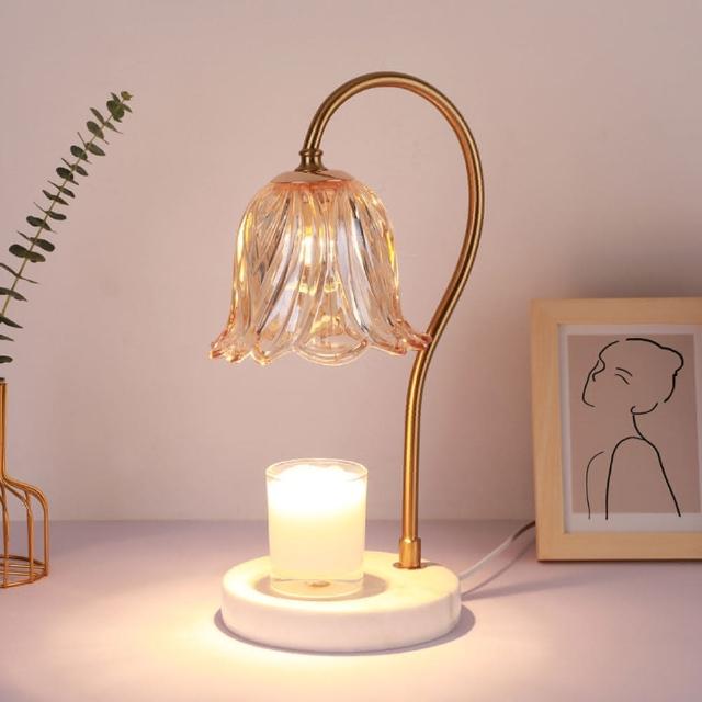 理享家 融蠟燈 蠟燭燈 可調光+定時 大理石底座 鈴蘭造型玻璃燈罩(香氛蠟燭燈 香氛蠟燭 專用燈台)