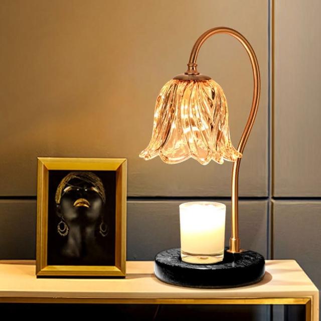 理享家 融蠟燈 蠟燭燈 可調光+定時 大理石底座 鈴蘭造型玻璃燈罩(香氛蠟燭燈 香氛蠟燭 專用燈台)