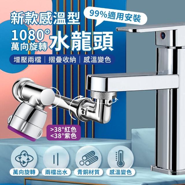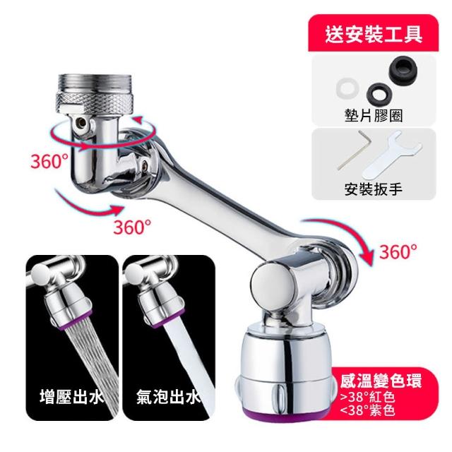 理享家 新款感溫型 雙出水1080°機械臂萬向旋轉 水龍頭(延伸器 洗臉盆面盆 廚房浴室 過濾起泡器 贈轉接頭)