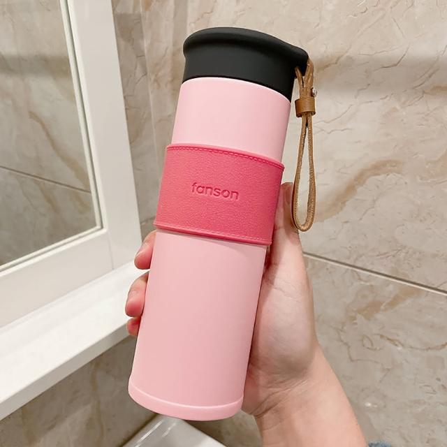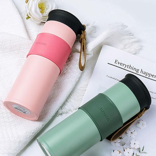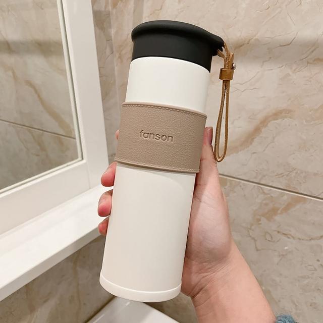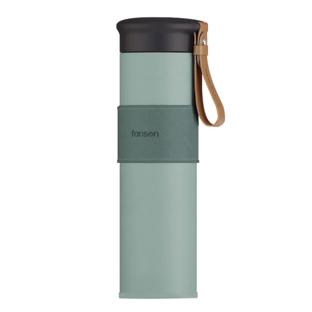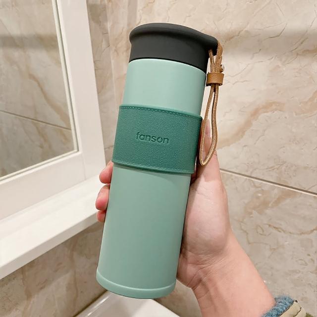 理享家 304不鏽鋼 優雅瘦瘦皮革保溫瓶 保溫杯 500ml - 水青色(內置濾網 環保飲料大象咖啡杯 隨行水壺)