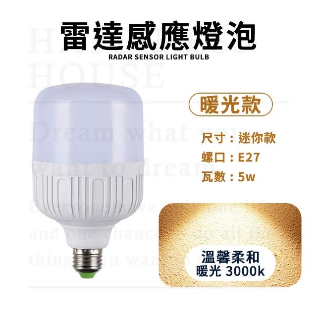 理享家 LED雷達感應燈炮 5W 白光 暖光(居家燈泡 感應燈 防水 E27 走廊燈 過道燈 樓梯燈 玄關燈)