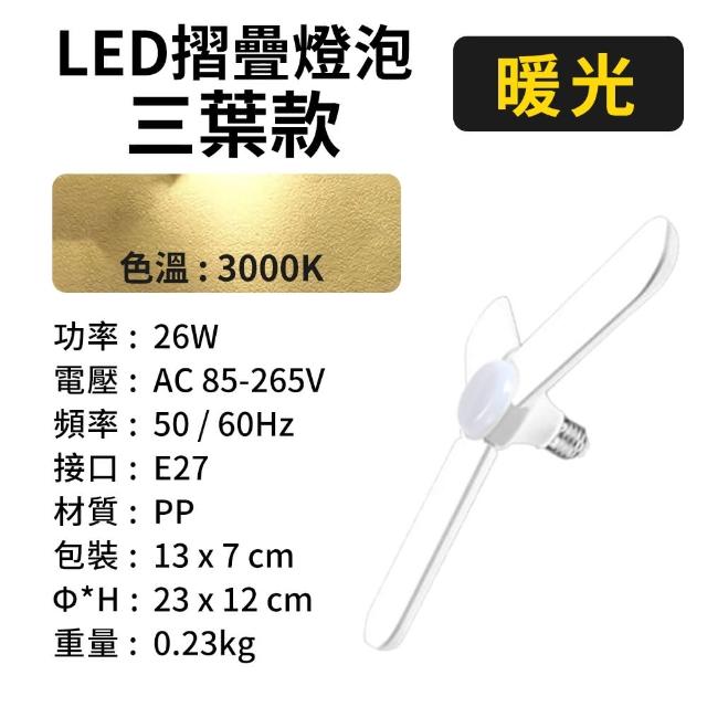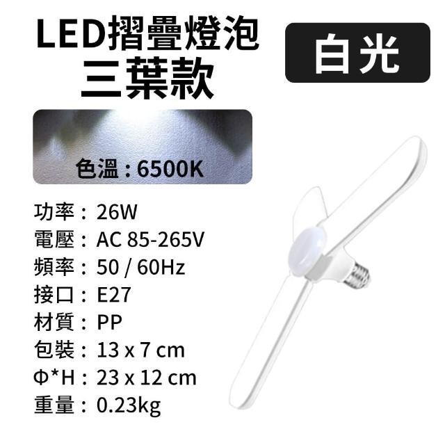 理享家 26W 三葉折疊燈泡 摺疊燈泡 白光 暖光(LED燈泡 居家燈泡 露營燈 野營燈 E27 吊燈 走廊燈 應急燈 過道燈 樓梯燈 玄關燈)