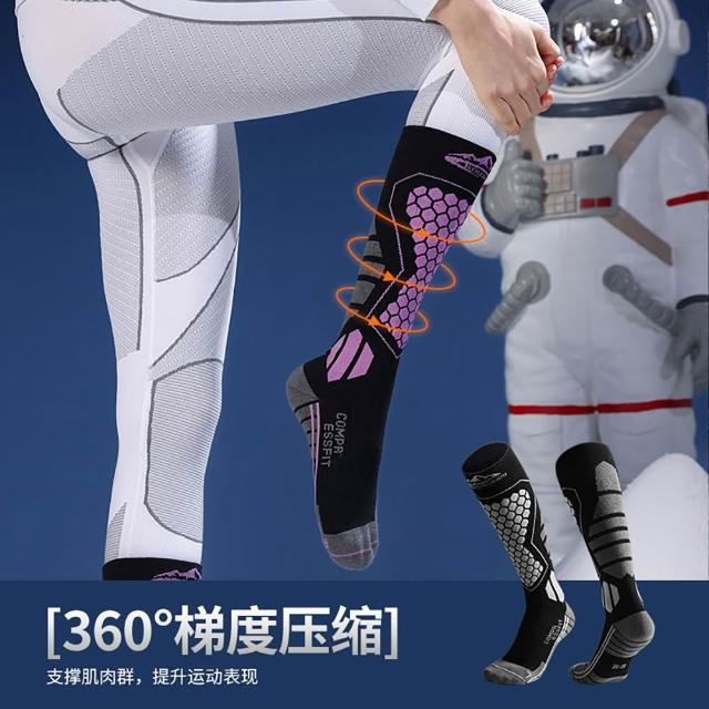 SMT 羊毛運動滑雪襪 小腿中筒止滑長襪 長筒壓力防滑厚底襪 男女高筒厚底機能襪