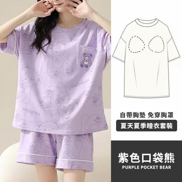夏天睡衣 多款可選 夏季睡衣 帶胸墊可當家居服 大尺碼女生短袖睡衣套
